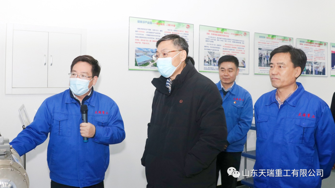 On December 9, a delegation of three led by Sun Pishu, Deputy Director of the Science and Technology Department of Shandong Province, accompanied by Dong Shuli, Deputy Director of Weifang Science and Technology Bureau, Li Tao, Member of the Party Working Committee and Deputy Director of the Management Committee of the High tech Zone, and Nie Shaojun, Director of the Science and Technology Bureau of the High tech Zone, visited Tianrui Heavy Industry for investigation.