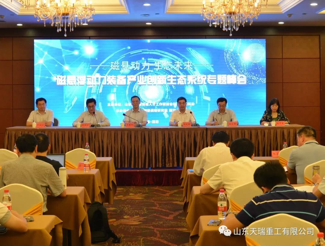 2019年9月11-12日,磁悬浮动力装备产业创新生态系统专题峰会在潍坊召开,此次专题峰会由山东省智库高端人才工作联席会议、山东省科协主办。省科协党组书记、副主席王春秋,市委常委、统战部长王兆辉为开幕式致辞,省科协副主席纪洪波、科技厅副厅长于洪文、省科协调宣部部长尹希友分别主持会议,省委改革办专职副主任杨占辉、省发改委总经济师张中英、市科协主席孙晓非、高新区管委会副主任董书礼、天瑞重工董事长李永胜、省内外有关专家、潍坊市有关领导以及企业用户代表参加会议。