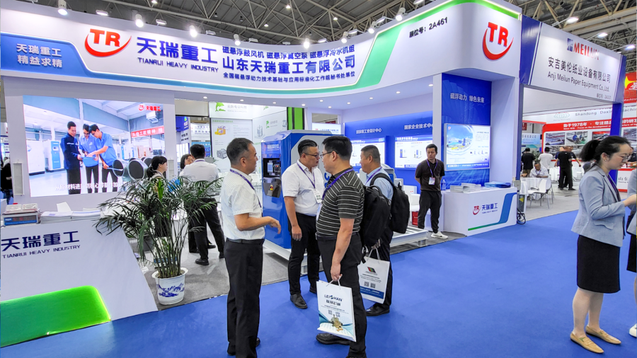 此次展会天瑞重工展出磁悬浮透平真空泵、磁悬浮鼓风机、磁悬浮冷水机组等节能装备,为造纸行业提供整体的节能改造服务。展会期间,天瑞重工展位异常火爆。中国造纸协会、中国造纸学会及各省造纸协会领导纷纷到访天瑞重工展位,对天瑞重工在造纸行业的贡献给予了充分肯定。金光集团APP、仙鹤股份、青山纸业、建晖纸业、五洲特纸、维美德(中国)、白云纸业等知名企业到访天瑞重工展位,进行深入交流,对天瑞重工磁悬浮动力节能装备表示高度认可。